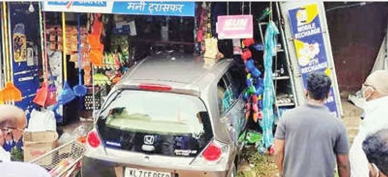 ചൊവ്വാഴ്ച രാവിലെ 11.30ക്ക് ആയിരുന്നു സാംവം. രജീഷ് കടയ്ക്കുള്ളില് ആയിരുന്നതിനാലും സാധനങ്ങള് വാങ്ങാന് പുറത്ത് ആളില്ലാതിരുന്നതിനാൽ വന് അപകടം ഒഴിവായി. കടയിലെ അലമാരകളും വില്പ്പനയ്ക്കുവെച്ചിരുന്ന സാധനസാമഗ്രികളും അപകടത്തില് നശിച്ചു. കാറിൻ്റെ മുന്ഭാഗം പൂർണമായും തകര്ന്നു. രാജനും പരിക്കേല്ക്കാതെ രക്ഷപ്പെട്ടു.