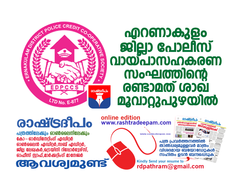 മൂവാറ്റുപുഴ: എറണാകുളം ജില്ലാ പോലീസ് വായ്പാ സഹകരണ സംഘത്തിന്റെ രണ്ടാമത് ശാഖ ശനിയാഴ്ച്ച മൂവാറ്റുപുഴ അരമനപടിയില് പ്രവര്ത്തനം തുടങ്ങും. എറണാകുളം റൂറല് പൊലീസ് മേധാവി കെ കാര്ത്തിക് ഉദ്ഘാടനം നിര്വ്വഹിയ്ക്കും. സംഘം പ്രസിഡന്റ് ഇ കെ അനില്കുമാര് അധ്യക്ഷനാകും. വൈസ് പ്രസിഡന്റ് ബെന്നി കുര്യാക്കോസ് സ്വാഗതം പറയും. മൂവാറ്റുപുഴ അര്ബന് ബാങ്ക് ചെയര്മാന് ഗോപി കോട്ടമുറിയ്ക്കല്, വാര്ഡ് കൗണ്സിലര് പി കെ സന്തോഷ് കുമാര്, കെ പി ഒ എ സംസ്ഥാന ജനറല് സെക്രട്ടറി സി ആര് ബിജു, കെ പി എ സംസ്ഥാന ജനറല് സെക്രട്ടറി കെ പി പ്രവീണ്, ഡിവൈഎസ്പി കെ അനില്കുമാര്, കെ പി എ സംസ്ഥാന വൈസ് പ്രസിഡന്റ് കെ ഷിബു രാജ്, കെ പി ഒ എ എറണാകുളം റൂറല് പ്രസിഡന്റ് എം കെ മുരളി, കെ പി ഒ എ കൊച്ചി സിറ്റി സെക്രട്ടറി എം പി സുരേഷ് ബാബു, കെ പി എ കൊച്ചി സിറ്റി സെക്രട്ടറി എന് വി നിഷാദ്, കെ പി എ എറണാകുളം റൂറല് സെക്രട്ടറി എം വി സനില്, സംഘം സെക്രട്ടറി എം കെ രേണുക ചക്രവര്ത്തി എന്നിവര് സംസാരിയ്ക്കും.