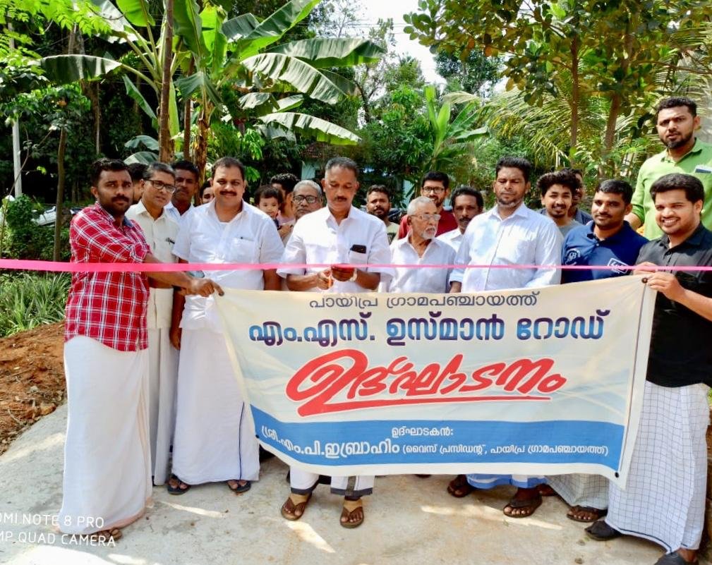 മുവാറ്റുപുഴ: പായിപ്ര ഗ്രാമപഞ്ചായത്ത് 2019 2020 പദ്ധതി യിൽ ഉൾപ്പെടുത്തി നിർമാണം പൂർത്തികരിച്ച മൂന്നാം വാർഡിലെ എം എം ഉസ്മാൻ റോഡ് ഉദ്ഘാടനം ഗ്രാമ പഞ്ചായത്ത് വൈസ് പ്രസിഡന്റ് എം പി നിർവഹിച്ചു. തുടർന്ന് നടന്ന യോഗം മുസ്ലിം ലീഗ് പായിപ്ര മൂന്നാം വാർഡ് ശാഖ പ്രസിഡന്റ് മുഹമ്മദ് ആലപ്പുറം ആദ്യക്ഷത വഹിച്ചു. കോൺഗ്രസ് ബൂത്ത് പ്രസിഡന്റ് പി എം ഷാൻ പ്ലാക്കുടി, എം കെ ഹസ്സൻ ഹാജി, പി എസ് റഷീദ്,ഷാഫി മുതിരക്കാലയിൽ, മൈതോന് പ്ലാക്കുടി, ശിഹാബ് എം എം, ടി യൂ ഇസ്മായിൽ, നജീബ് ഈ ജെ, റഹീം പി എസ്, ടി പി സീതി, അനസ് എം എം, അഷ്റഫ് പി. ഈ, സിദ്ധീഖ് എം എസ്,