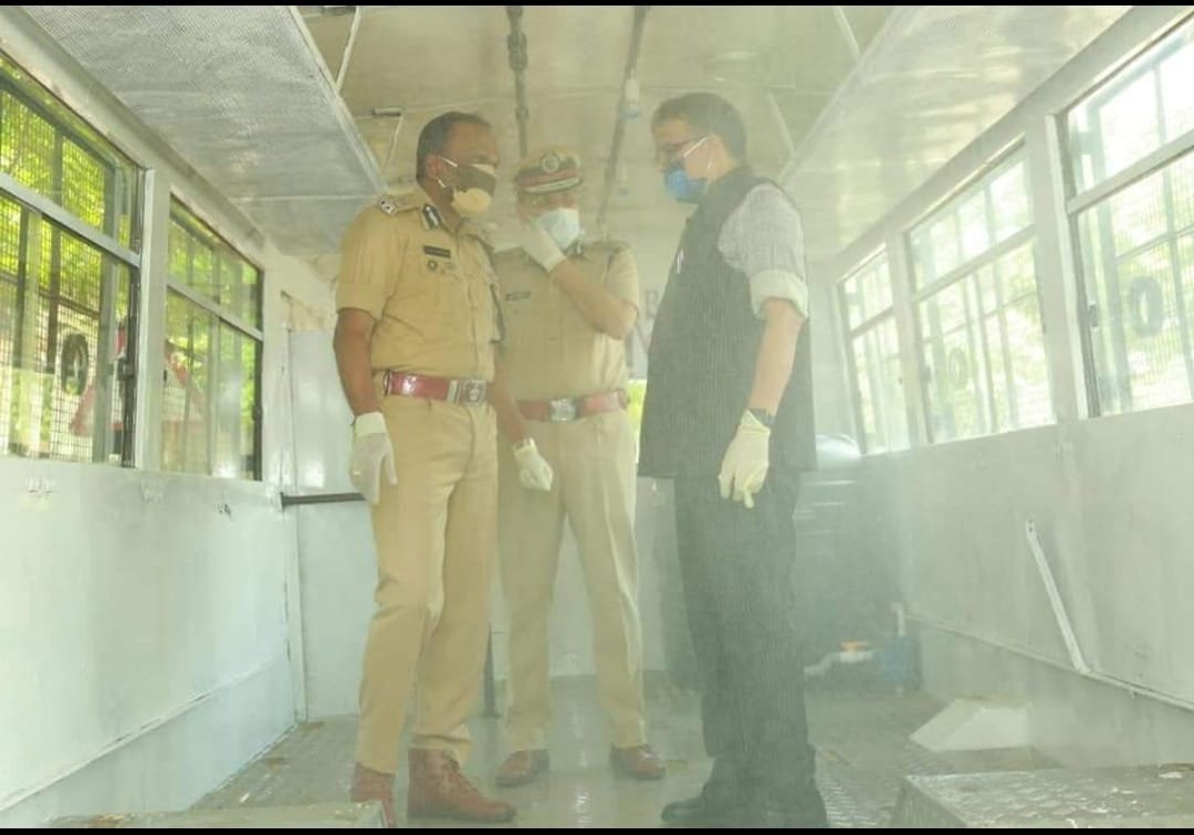 പൊലീസുകാരെ വിന്യസിച്ചിരിക്കുന്ന എല്ലാ സ്ഥലങ്ങളിലും കൃത്യമായ ഇടവേളകളില് എത്തുന്ന ഈ ബസില് അണുനാശിനി തളിക്കാനുളള സംവിധാനമുണ്ട്. പൊലീസുകാര് പിന്വാതിലിലൂടെ പ്രവേശിച്ച് ബസ്സിനുളളിലൂടെ കടന്ന് മുന്നില് എത്തുന്ന സമയത്തിനുളളില് അവരെ പൂര്ണ്ണമായും അണുവിമുക്തരാക്കാന് ഈ സംവിധാനത്തിന് കഴിയും.