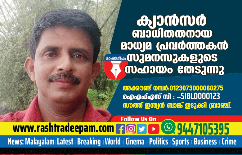 രണ്ടുമാസം മുമ്പ് ശരീരമാസകലം നുറുങ്ങുന്ന വേദനയോടെയാണ് രോഗം ആരംഭിച്ചത്. ഇടുക്കി കോട്ടയം മെഡിക്കല് കോളേജുകളില് നടത്തിയ പരിശോധനയിലാണ് മള്ട്ടിപ്പിള് മൈലോമ എന്ന മഹാരോഗമാണെന്ന് കണ്ടെത്തിയത്. പിന്നീട് തിരുവനന്തപുരം റീജനല് ക്യാന്സര് സെന്ററില് ചികിത്സ ആരംഭിച്ചു. ഇതിനിടെ കോവിഡും ന്യുമോണിയയും പിടിപെട്ടതിനെ തുടര്ന്ന് കോട്ടയം കാരിത്താസ് ആശുപത്രിയിലെ തീവ്ര പരിചരണ വിഭാഗത്തില് ചികിത്സയിലാണ്.കോവിഡ് ഭേദപ്പെട്ടുവെങ്കിലും ന്യുമോണിയയോടൊപ്പം മജ്ജക്കുളളിലെ അര്ബുദരോഗം ഗുരുതരമായി തുടരുകയാണ്.