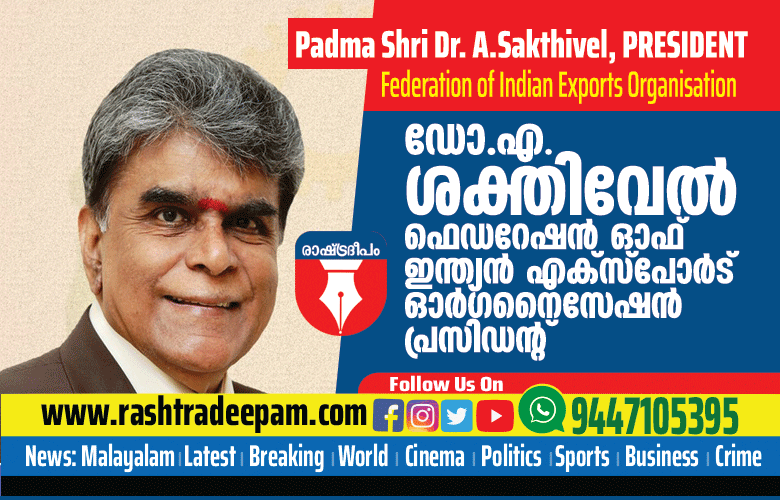 കൊച്ചി:കേന്ദ്ര വാണിജ്യ മന്ത്രാലയത്തിന് കീഴില് പ്രവര്ത്തിക്കുന്ന ഫെഡറേഷന് ഓഫ് ഇന്ത്യന് എക്സ്പോര്ട് ഓര്ഗനൈസേഷന്റെ (ഫിയോ ) പ്രസിഡന്റായി ഡോ .എ .ശക്തിവേല് ഏകകണ്ഠമായി തിരഞ്ഞെടുക്കപ്പെട്ടു.