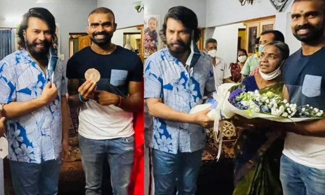 ശ്രീജേഷിനെ അഭിനന്ദിക്കുന്നതിനൊപ്പം ‘സ്നേഹം കൊണ്ടു പൊതിഞ്ഞ’ ഒരു പൂച്ചെണ്ടും മമ്മൂട്ടി സമ്മാനിച്ചു. ഒളിമ്പിക്സ് മെഡല് ശ്രീജേഷ് താരത്തിന് കാണിക്കുകയും ചെയ്തു. നിര്മാതാവ് ആന്റോ ജോസഫ്, പ്രൊഡക്ഷന് കണ്ട്രോളര് ബാദുഷ എന്നിവര്ക്കൊപ്പമാണ് മമ്മൂട്ടിയെത്തിയത്.