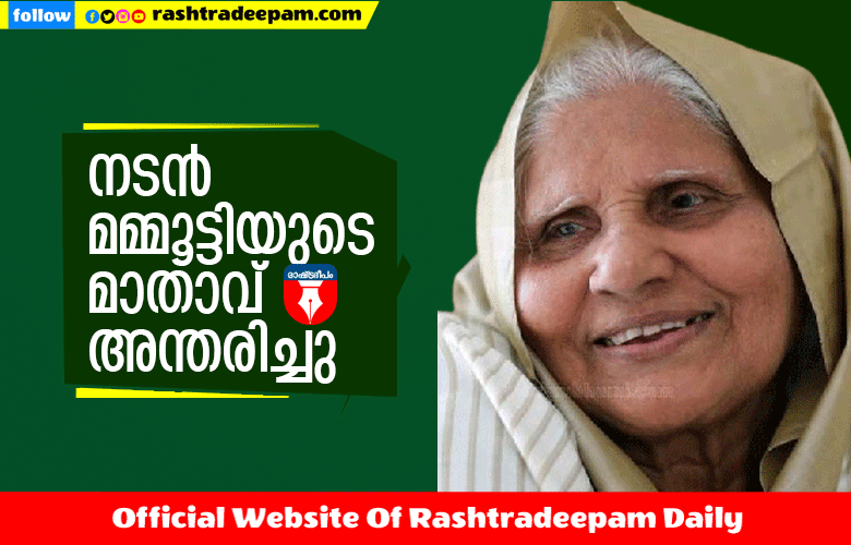 നടന് മമ്മൂട്ടിയുടെ മാതാവ് ഫാത്തിമാ ഇസ്മായില് (93) അന്തരിച്ചു. കൊച്ചിയിലെ സ്വകാര്യ ആശുപത്രിയില് ഇന്ന് പുലര്ച്ചെയായിരുന്നു അന്ത്യം. മമ്മൂട്ടി, ഇബ്രാഹിം കുട്ടി എന്നിവരുള്പ്പെടെ ആറ് മക്കളുണ്ട്. നടന്മാരായ ദുല്ഖര് സല്മാന്, അഷ്കര് സൗദാന്, മഖ്ബൂല് സല്മാന് എന്നിവര് ചെറുമക്കളാണ്. ഖബറടക്കം ഇന്ന് വൈകുന്നേരം 4ന് ചെമ്പ് ജും ആ മസ്ജിദ് ഖബര്സ്ഥാനില് നടക്കും