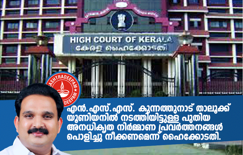 എന്.എസ്.എസ്. കുന്നത്തുനാട് താലൂക്ക് യൂണിയനിൽ അനധികൃതമായി നടത്തിയിട്ടുള്ള പുതിയ നിര്മ്മാണ പ്രവര്ത്തനങ്ങള് പൊളിച്ചു നീക്കണമെന്ന് ഹൈക്കോടതി. കഴിഞ്ഞ 2 ആഴ്ച്ചകള്ക്ക് മുന്പ് എന്.എസ്.എസ്. യൂണിയന് ഓഫീസിന്റെ തെക്ക് ഭാഗത്ത് മുന്സിപ്പാലിറ്റി റോഡിലേക്കുള്ള മതിലുകള് പൊളിക്കുകയും, കെട്ടിടത്തിന്റെ ഭിത്തികള് പൊളിച്ചുമാറ്റി ഷട്ടറുകള് സ്ഥാപിക്കുകയും, അയ്യപ്പക്ഷേത്രത്തിൽ നിന്നാരംഭിച്ച് കാഞ്ഞിരക്കാട് ഭാഗത്തേക്ക് പോകുന്ന മുന്സിപ്പാലിറ്റിയുടെ റോഡിലേക്ക് ഇറക്കിവച്ച് സ്റ്റെപ്പുകള് നിര്മ്മിക്കുകയും ചെയ്തതിനെത്തുടര്ന്ന് കഴിഞ്ഞ 22/09/2020 ന് മുന്സിപ്പാലിറ്റി പണികള് നിര്ത്തിവയ്ക്കാനും, നിയമവിരുദ്ധമായി പണികഴിപ്പിച്ചത് പൊളിച്ചുനീക്കാനും, എന്.എസ്.എസ്. കുന്നത്തുനാട് താലൂക്ക് യൂണിയന് നോട്ടീസ് നðകിയിരുന്നു. എന്നാൽ നോട്ടീസ് ലഭിച്ചതിനുശേഷവും നിയമവിരുദ്ധമായി പണികഴിപ്പിച്ചത് പൊളിച്ചുനീക്കാതെ കെട്ടിടത്തിന്റെ ബാക്കിപണികള്കൂടി തീര്ക്കാനാണ് എന്.എസ്.എസ്. യൂണിയന് ശ്രമിച്ചത്.