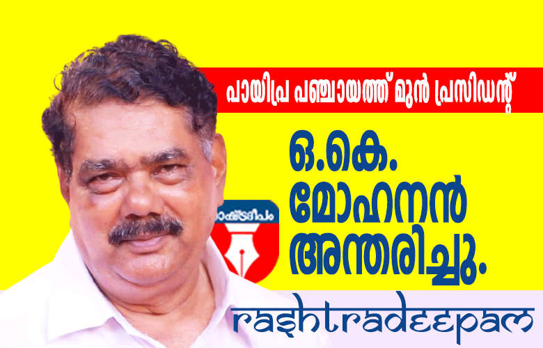 മൂവാറ്റുപുഴ സിപിഎം നേതാവും പായിപ്ര പഞ്ചായത്ത് മുന് പ്രസിഡന്റുമായ ഒഴക്കനാട്ട് ഒ. കെ. മോഹനന് 72 അന്തരിച്ചു. ദീര്ഘനാള് പായിപ്ര സര്വ്വീസ് സഹകരണ സംഘം പ്രസിഡന്റ്ായിരുന്നു. പായിപ്ര ഗ്രാമീണ സഹകരണ സംഘം പ്രിസിഡന്റ്, ബ്ലോക്ക് പഞ്ചായത്ത് മുന് വൈസ് പ്രിസിഡന്റ് എന്നീ നിലകളിലും പ്രവര്ത്തിച്ചിട്ടുണ്ട്. സിപിഎം പായിപ്ര ലോക്കല് കമ്മിറ്റി അംഗം ,കര്ഷക സംഘം വില്ലേജ് സെക്രട്ടറി എന്നിനിലകളില് പ്രവര്ത്തിച്ചിട്ടുണ്ട്. മുന് എം .പി , പി പി എസ്തോസിന്റെ ഡ്രൈവര് ആയിരുന്നു. ആദ്യകാല സി പി എം നേതാവ് കുന്നുംപുറത്ത് ഗോപാലന് വൈദ്യരുടെ മകളായ ഗിരിജയാണ് ഭാര്യ. മിഥുന് മോഹന്, മേഘ മോഹന് എന്നിവര് മക്കളും. അരുണ് (എസ്ബി ഐ മൂവാറ്റുപുഴ) അഡ്വ വിനീത മരുമക്കളുമാണ്. സംസ്ക്കാരം ഇന്ന് (വ്യാഴാഴ്ച) ഉച്ചയ്ക്ക ഒരു മണിക്ക് പായിപ്രയിലെ വീട്ടു വളപ്പില്