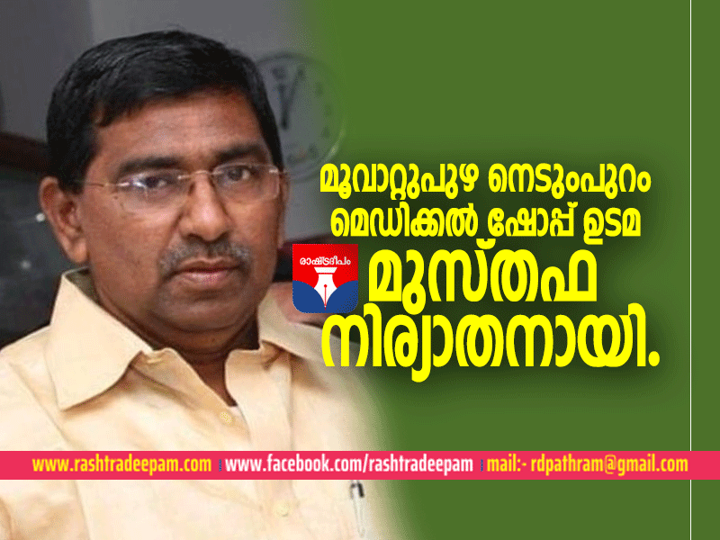 മൂവാറ്റുപുഴ : നഗരത്തിലെ നെടുംപുറം മെഡിക്കല് ഷോപ്പ് ഉടമകാവുംങ്കര നെടുംപുറത്ത് പരേതനായ മീരാന്റെ മകന് മുസ്തഫ (മുത്തു- 60 ) നിര്യാതനായി. ഖബറടക്കം വെള്ളിയാഴ്ച രാവിലെ 10 ന് സെന്ട്രല് ജുമാ മസ്ജിദ് ഖബര്സ്ഥാനില്. ഭാര്യ .പല്ലാരിമംഗലം കാഞ്ഞിരമുകളേല് കുടുംബാംഗം സീനത്ത്. മക്കള്: ജസീര് മുസ്തഫ( ദുബായ് ഗവണ്മെന്റ് സര്വീസ് ), ആതിഫ് മുസ്തഫ. മരുമക്കള് . റീമ ജസീര്, സഫ്വാ ആതിഫ്.