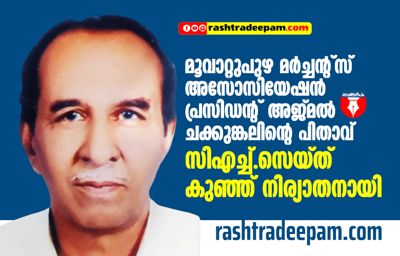 മൂവ്വാറ്റുപുഴ: കേരള വ്യാപാരി വ്യവസായി ഏകോപനസമിതി ജില്ലാ ട്രഷററും, മൂവാറ്റുപുഴ മര്ച്ചന്റ്സ് അസോസിയേഷന് പ്രസിഡന്റുമായ അജ്മല് ചക്കുങ്കലിന്റെ പിതാവും സി.എസ്. സോമില് ഉടമയുമായ സിഎച്ച് സൈയ്ത് കുഞ്ഞ് (82) നിര്യാതനായി.