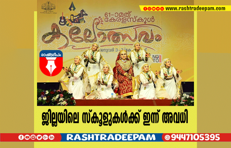 കോഴിക്കോട്: സംസ്ഥാന സ്കൂള് കലോത്സവത്തോട് അനുബന്ധിച്ച് ഇന്ന് കോഴിക്കോട് ജില്ലകളിലെ സ്കൂളുകള്ക്ക് അവധി. വിദ്യാര്ഥികള്ക്ക് സ്കൂള് കലോത്സവത്തില് പങ്കെടുക്കുന്നതിനാണ് അവധി നല്കിയത്. പൊതു വിദ്യാഭ്യാസ ഡയറക്ടറുടെ നിര്ദേശപ്രകാരമാണ് തീരുമാനം. ജില്ലയിലെ പ്രൈമറി, സെക്കന്ഡറി, ഹയര് സെക്കന്ഡറി, വിഎച്ച്എസ്ഇ വിദ്യാലയങ്ങള്ക്ക് വെള്ളിയാഴ്ച അവധി ആയിരിക്കുമെന്ന് വിദ്യാഭ്യാസ ഉപഡയറക്ടര് സി മനോജ്കുമാര് അറിയിച്ചു.