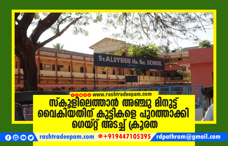 ആലപ്പുഴ: സ്കൂളിലെത്താന് അഞ്ചു മിനുട്ട് വൈകിയതിന് കുട്ടികളെ പുറത്താക്കി ഗെയ്റ്റ് അടച്ച് എടത്വ സെന്റ് അലോഷ്യസ് സ്കൂള് അധികൃതരുടെ ക്രൂരത. 25 ഓളം വിദ്യാര്ത്ഥികളെയാണ് സ്കൂളിലേക്ക് കയറ്റാതെ ഗേറ്റ് പൂട്ടിയത്. കുട്ടികള് വെയിലത്ത് റോഡില് നില്ക്കുകയാണ്. അതേസമയം സ്ഥിരം വൈകുന്നവരെയാണ് പുറത്ത് നിര്ത്തിയതെന്ന് പ്രിന്സിപ്പല് മാത്തുക്കുട്ടി വര്ഗീസ് പറഞ്ഞു. രാവിലെ ഒമ്പത് മണിക്ക് ആണ് സ്കൂളില് ബെല് അടിക്കുന്നത്. 9.10 വരെ എത്തിയ കുട്ടികളെ ക്ലാസിലേക്ക് കയറ്റിയിട്ടുണ്ട്. ക്ലാസില് കയറാതെ കറങ്ങി നടക്കുന്നവരാണ് ഈ കുട്ടികള്. അതുകൊണ്ടാണ് സ്കൂളില് നിന്നും പുറത്താക്കി ഗേറ്റ് അടച്ചതെന്നും പ്രിന്സിപ്പല് പ്രതികരിച്ചു. വിദ്യാര്ത്ഥികളെ പുറത്താക്കിയതിനെതിരെ രക്ഷിതാക്കള് രംഗത്തെത്തിയിട്ടുണ്ട്. കുട്ടികള് അഞ്ചുമിനുട്ട് വൈകിയതിനാണ് ഈ ക്രൂരത എന്ന് രക്ഷിതാക്കള് പറഞ്ഞു.