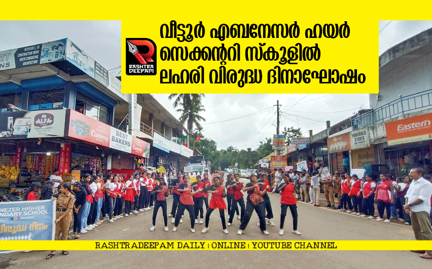 മൂവാറ്റുപുഴ: വീട്ടൂര് എബനേസര് ഹയര് സെക്കന്ററി സ്കൂളില് ലഹരി വിരുദ്ധദിനാഘോഷം നടത്തി. എന്.സി.സി, എസ്.പി.സി. റെഡ് ക്രോസ്, സ്കൗട്ട് ആന്ഡ് ഗൈഡ്സ്, എന്.എസ്.എസ് , ശാസ്ത്ര ക്ലബ്ബ് എന്നീ സന്നദ്ധ സംഘടനകള് നേതൃത്വം നല്കി. സ്കൂള് അസംബ്ലിയില് പ്രധാന അധ്യാപിക ജീമോള് കെ. ജോര്ജ്ജ് ലഹരി വിരുദ്ധ ദിന സന്ദേശം നല്കി.