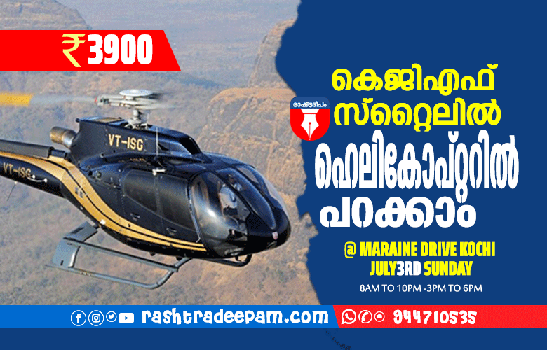 എത്ര തിരക്കിലായാലും ഒരു ഹെലികോപ്റ്റര് പറക്കുന്നത് കണ്ടാല് അത് നോക്കിനില്ക്കുവാനായി സമയം കണ്ടെത്തുന്നവരാണ് നാമെല്ലാവരും. എന്നാല് ആകാശത്ത് കണ്ട ആ സ്വപ്നം സാധ്യമാക്കുവാനുള്ള അവസരം ഒരുങ്ങുകയാണ്. കൊച്ചി മറൈന് ഡ്രൈവില് ജൂലൈ മൂന്ന്, ഞായറാഴ്ച്ച രാവിലെ 8 മണി മുതല് വൈകീട്ട് 5.30 വരെയാണ് ഹെലികോപ്റ്റര് യാത്ര സഫലമാക്കുവാനുള്ള അരങ്ങൊരുങ്ങുന്നത്. ഇവന്റ്സ് ഇന്ത്യയുമായി സഹകരിച്ച് കിച്ചു ദിവാകറാണ് ഈ വേറിട്ട സംരംഭവുമായി മുന്നോട്ട് വന്നിരിക്കുന്നത്. മുന്കാലങ്ങളില് കലൂര് സ്റ്റേഡിയത്തില് നടത്തിയ ഹെലികോപ്റ്റര് യാത്രകളില് വന് ജന പങ്കാളിത്തമാണ് ഉണ്ടായിരുന്നത്. ഒറ്റയ്ക്കും, കുടുംബമായും, നൂറ് കണക്കിന് ആളുകല് തങ്ങളുടെ സ്വപ്നപൂര്ത്തീകരണത്തിന്റെ പുഞ്ചിരിയോടെ ആകാശം തൊട്ടറിഞ്ഞ വീഡിയോകള് സമൂഹമാധ്യമങ്ങളിലും വൈറലായിരുന്നു.