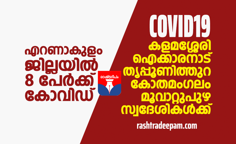 എറണാകുളം ജില്ലയില് ഇന്ന് 8 പേര്ക്ക് രോഗം സ്ഥിരീകരിച്ചു. ജൂണ് 12 ന് കുവൈറ്റ് കൊച്ചി വിമാനത്തിലെത്തിയ 33 വയസ്സുള്ള കളമശ്ശേരി സ്വദേശിനിക്കും, ഇവരുടെ അടുത്ത ബന്ധുവായ 44 വയസ്സുകാരനും, ജൂണ് 19 ന് ഹൈദരാബാദ്-കൊച്ചി വിമാനത്തിലെത്തിയ 56 വയസ്സുള്ള ഐക്കാരനാട് സ്വദേശിനിക്കും, അതേ വിമാനത്തിലെത്തിയ ഇവരുടെ ബന്ധുവായ 4 വയസ്സുള്ള കുട്ടിക്കും, ജൂണ് 13 ന് ചെന്നൈ കൊച്ചി വിമാനത്തിലെത്തിയ 23 വയസ്സുള്ള തൃപ്പൂണിത്തുറ സ്വദേശിക്കും, ജൂണ് 18 ന് ഡല്ഹി – കൊച്ചി വിമാനത്തിലെത്തിയ 33 വയസ്സുള്ള മൂവാറ്റുപുഴ സ്വദേശിക്കും, ജൂണ് 18 ന് ഡല്ഹി കൊച്ചി വിമാനത്തിലെത്തിയ 33 വയസ്സുള്ള കളമശ്ശേരി സ്വദേശിക്കും, ജൂണ് 19 ന് മസ്കറ്റ് -കണ്ണൂര് വിമാനത്തിലെത്തിയ 54 വയസ്സുള്ള കോതമംഗലം സ്വദേശിക്കും ഇന്ന് രോഗം സ്ഥിരീകരിച്ചു.