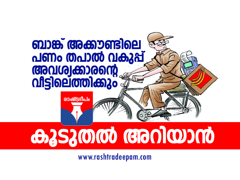 തിരുവനന്തപുരം: ബാങ്ക് അക്കൗണ്ടിലെ പണം ഇനി തപാല് വകുപ്പ് വഴി ആവശ്യക്കാരന്റെ വീട്ടുപടിക്കലെത്തും. ക്ഷേമപെന്ഷനും സ്കോളര്ഷിപ്പും ഉള്പ്പെടെയുള്ളവ ലോക്ക്ഡൗണ് കാലത്ത് ബാങ്കുകളില് എത്താതെതന്നെ കൈപ്പറ്റാവുന്ന പദ്ധതി ധനകാര്യമന്ത്രി ഡോ: ടി.എം തോമസ് ഐസക് ചീഫ് പോസ്റ്റ് മാസ്റ്റര് ജനറല് ഓഫീസില് നേരത്തെ ഉദ്ഘാടനം ചെയ്തിരുന്നു. ആധാറും മൊബൈല് നമ്പറും ബന്ധിപ്പിച്ചിട്ടുള്ള ഏതു ബാങ്ക് അക്കൗണ്ടില് നിന്നും പണം ഇത്തരത്തില് പോസ്റ്റ് ഓഫീസില് വിളിച്ചാല് പോസ്റ്റുമാന് മുഖേന വീട്ടിലെത്തിക്കും.