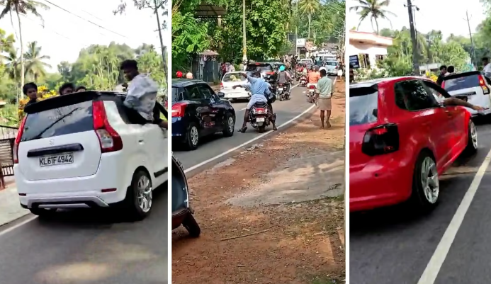 പിന്നാലെ വരുന്ന വാഹനങ്ങളുടെ വഴി മുടക്കിയുളള ആഘോഷം മറ്റൊരു കാറിലെ യാത്രക്കാർ ചോദ്യം ചെയ്തു. ചോദ്യത്തിൻെറ ടോൺ മാറി വാക്കു തർക്കമായി, പിന്നെ വഴക്കായി,ഒടുവിൽ തല്ലുമായി. വഴി കൊടുക്കാതെയുള്ള വിവാഹസംഘത്തിന്റെ യാത്ര പിന്നാലെ ഉണ്ടായിരുന്ന മറ്റൊരു കാറിലെ യാത്രക്കാർ ചോദ്യം ചെയ്തു. പിന്നാലെ വാക്കുതർക്കമുണ്ടായി. ഇത് മൂർച്ഛിക്കുകയും വഴക്ക് അടിയില് കലാശിക്കുകയുമായിരുന്നുകൂട്ടത്തല്ല് അവസാനിപ്പിക്കാൻ പൊലീസ് വരേണ്ടി വന്നു. അടിയാകുമ്പോൾ ചില്ലറ പരിക്കൊക്കെ സ്വാഭാവികം