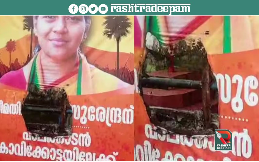 ഇതിനിടെ ശോഭയെ അനുകൂലിച്ച് പാലക്കാട് നഗരസഭാ ഓഫീസിന് മുന്നിൽ സ്ഥാപിച്ച ഫ്ലക്സ് ബോര്ഡാണ് കത്തിച്ച നിലയിൽ കണ്ടെത്തിയത്. കാവിക്കോട്ടയിലേക്ക് സ്വാഗതം എന്നെഴുതിയ ഫ്ലക്സ് ബോർഡാണ് ഇതിനിടെ ശോഭയെ അനുകൂലിച്ച് പാലക്കാട് നഗരസഭാ ഓഫീസിന് മുന്നിൽ സ്ഥാപിച്ച ഫ്ലക്സ് ബോര്ഡാണ് കത്തിച്ച നിലയിൽ കണ്ടെത്തിയത്. പാലക്കാട് കത്തിച്ചത്. സംഭവത്തെ തുടർന്ന് പോലീസ് സ്ഥലത്തെത്തി അന്വേഷണം നടത്തി. ഫ്ലക്സ് ബോധപൂർവം കത്തിച്ചതാണെന്നാണ് നിഗമനം.