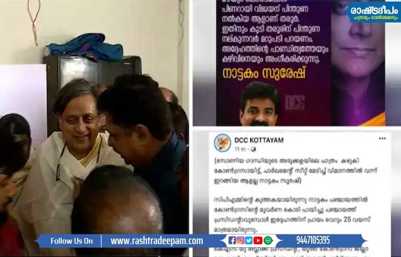 പോസ്റ്റിനെതിരെ പരാതി നല്കാന് ഒരുങ്ങുകയാണ് തരൂര് അനുകൂലികള്. വിവാദമായതോടെ ഈ പോസ്റ്റ് ഡിലീറ്റ് ചെയ്തു. ഈ പേജ് ഡിസിസിയുടെ ഔദ്യോഗിക പേജല്ലെന്ന് നാട്ടകം സുരേഷ് പ്രതികരിച്ചു. പേജില് വന്ന വിവാദ പോസ്റ്റിനെ കുറിച്ച് അറിയില്ലെന്നും നാട്ടകം സുരേഷ് പറഞ്ഞു. പേജില് നല്കിയിരിക്കുന്ന ഫോണ് നമ്പരടക്കം നാട്ടകത്തിന്റേതാണെന്നാണ് തരൂര് അനുകൂലികള് പറയുന്നത്.