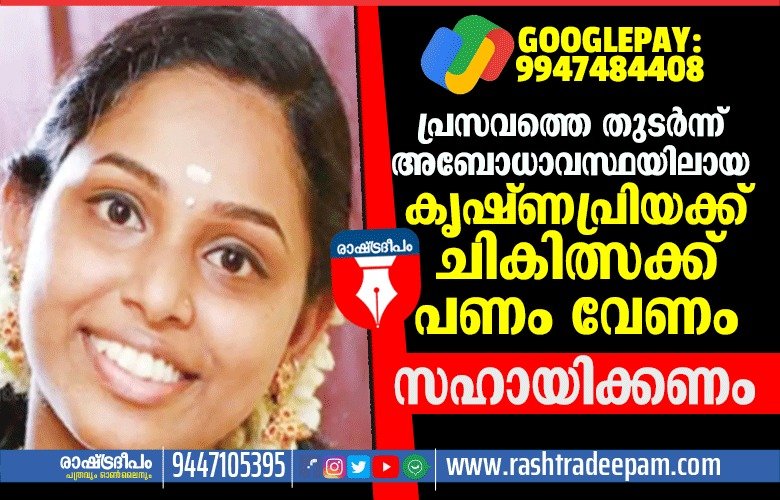 പ്രസവത്തെ തുടര്ന്ന് അബോധാവസ്ഥയിലായ കൃഷ്ണപ്രിയ (24)യുടെ ജീവന് രക്ഷിക്കാനുള്ള ശ്രമത്തിലാണ് കുടുംബം. ഒന്നര ആഴ്ച മുന്പാണ് കൃഷ്ണപ്രിയയെ പ്രസവത്തിനായി മൂവാറ്റുപുഴയിലെ സ്വകാര്യ ആശുപത്രിയില് പ്രവേശിപ്പിച്ചത്. ജനുവരി 29-ന് സിസേറിയന് നടത്തി. ഇരട്ട കുട്ടികള്ക്ക് ജന്മം നല്കി. പിന്നീടായിരുന്നു കൃഷ്ണപ്രിയയുടെ ആരേഗ്യാവസ്ഥ മോശമായത്. പിറ്റേന്ന് ശ്വാസം മുട്ടല് അനുഭവപ്പെട്ട് അബോധാവസ്ഥയിലാവുകയായിരുന്നു.