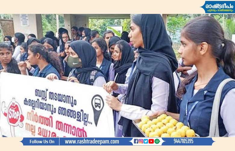 സ്റ്റോപ്പില് നിര്ത്താതെ പോവുന്ന ബസുകാര്ക്ക് മധുരം നല്കി പ്രതിഷേധിച്ച് വിദ്യാര്ഥികള്. മാവൂര് മഹ്ളറ ആര്ട്സ് ആന്ഡ് സയന്സ് കോളജ് വിദ്യാര്ഥി യൂണിയന്റെ നേതൃത്വത്തിലായിരുന്നു വേറിട്ട പ്രതിഷേധം.