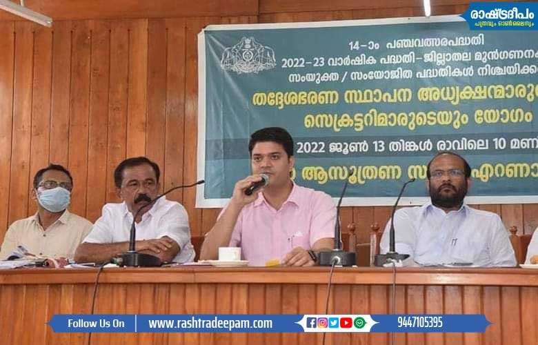 ജില്ലാ പഞ്ചായത്ത് പ്രസിഡന്റ് ഉല്ലാസ് തോമസ് യോഗത്തിന് അധ്യക്ഷത വഹിച്ചു. ജില്ലയിലെ എല്ലാ തരിശു ഭൂമികളിലും കൃഷി ആരംഭിക്കുന്നതിനായി തദ്ദേശ സ്വയം ഭരണ സ്ഥാപനങ്ങള് ഒരുങ്ങണമെന്ന് അദ്ദേഹം ആവശ്യപ്പെട്ടു. പച്ചക്കറി ഉത്പാദനത്തിലും നെല്ലുത്പാദനത്തിലും സ്വയം പര്യാപ്തത കൈവരിക്കണം. പരമാവധി വിദ്യാര്ത്ഥികള്ക്ക് നീന്തല് പരിശീലനം നല്കുന്നതിനും പ്രാഥമിക ആരോഗ്യ കേന്ദ്രങ്ങളോട് അനുബന്ധിച്ചു ഓപ്പണ് ജിമ്മുകള് ആരംഭിക്കുന്നതിനുമുള്ള പ്രവര്ത്തനങ്ങളുമായി മുന്നോട്ട് പോവേണ്ടതുണ്ടെന്നും അദ്ദേഹം പറഞ്ഞു.
