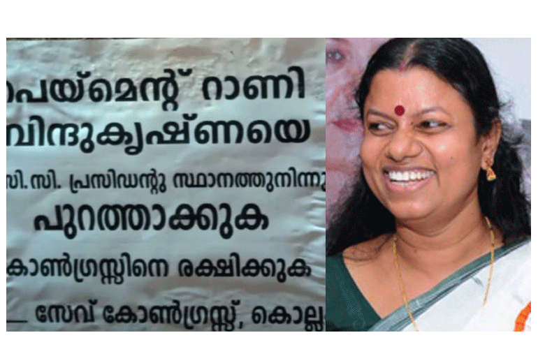 ബിന്ദുകൃഷ്ണ ബിജെപിയുടെ ഏജന്റാണ്, പേയ്മെന്റ് റാണിയായ ബിന്ദുകൃഷ്ണ കോണ്ഗ്രസിന്റെ ശത്രുവാണെന്നും പാര്ട്ടിയില് നിന്ന് പുറത്താക്കണമെന്നും പോസ്റ്ററില് ആവശ്യപ്പെടുന്നു. കൊല്ലം ഡിസിസി ഓഫീസിനും ആര്.എസ്.പി ഓഫീസിനും മുന്നിലാണ് പോസ്റ്റര് പ്രത്യക്ഷപ്പെട്ടിരിക്കുന്നത്.