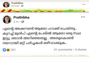 തന്റെ ഫേസ്ബുക്ക് പേജ് ആരോ ഹാക്ക് ചെയ്തെന്നും ദുര്വ്യാഖ്യാനങ്ങള് ഒഴിവാക്കണമെന്ന അഭ്യര്ത്ഥനയുമായി അടുത്ത പോസ്റ്റ് തൊട്ടുപിന്നാലെയെത്തി. എന്നാല് മിനിറ്റുകള്ക്കുള്ളില് വിശദീകരണ പോസ്റ്റും യു. പ്രതിഭ പിന്വലിച്ചു. ഇതോടെ സമൂഹമാധ്യമങ്ങളിലെ ചര്ച്ചക്ക് ചൂടേറി.