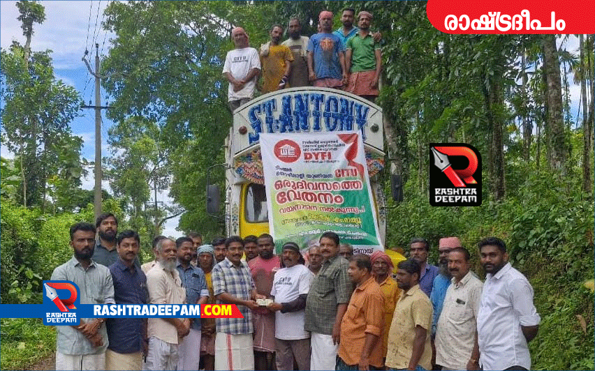 മൂവാറ്റുപുഴ: കല്ലൂര്ക്കാട് ടിമ്പര് തൊഴിലാളി യൂണിയന് സിഐടിയു ഒരു ദിവസത്തെ അവരുടെ തൊഴില് വരുമാനം ഡിവൈഎഫ്ഐ പ്രഖ്യാപിച്ചിട്ടുള്ള റിബില്ഡ് വയനാട് ക്യാമ്പയിനിലേക്ക് നല്കി.. തൊഴിലാളി യൂണിയന് സെക്രട്ടറി ജോര്ജ് വര്ഗീസില് നിന്ന് ഡിവൈഎഫ്ഐ ജില്ലാ പ്രസിഡന്റ് അനീഷ് എം മാത്യു തുക ഏറ്റുവാങ്ങി. സിപിഐഎം ഏരിയ കമ്മിറ്റിയംഗം എം ആര് പ്രഭാകരന്, സിപിഐഎം ലോക്കല് സെക്രട്ടറി എസ് കെ പ്രസാദ്, ഡിവൈഎഫ്ഐ ബ്ലോക്ക് സെക്രട്ടറി ഫെബിന് പി മൂസ, ബ്ലോക്ക് പ്രസിഡന്റ് റിയാസ് ഖാന് എം എ, ബ്ലോക്ക് ട്രഷറര് എസ് പ്രശാന്ത്, ഡിവൈഎഫ്ഐ മേഖലാ സെക്രട്ടറി ടിറ്റോ വിന്സന്റ്, മേഖലാ പ്രസിഡന്റ് അഖില് ചെല്ലപ്പന്, കല്ലൂര്ക്കാട് ഗ്രാമപഞ്ചായത്തംഗം എം കെ ജിബി എന്നിവര് പങ്കെടുത്തു.