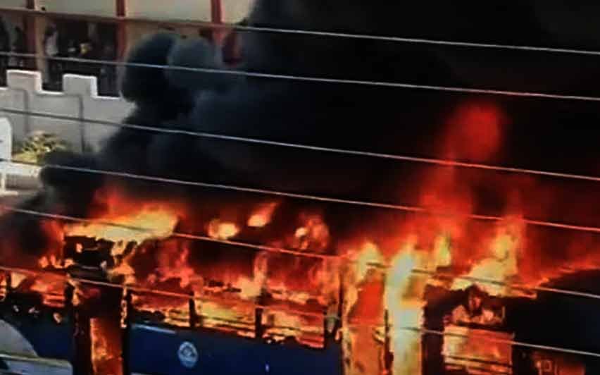 ഇതിന് തൊട്ടുമുന്പ് യാത്രക്കാരെ പുറത്തിറക്കിയതിനാല് വലിയ അപകടം ഒഴിവായി.