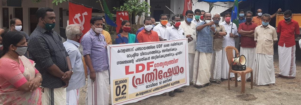 ഭരണസമിതിയുടെ തെറ്റായ ഈ. പ്രവര്ത്തനങ്ങളില് പ്രതിഷേധിച്ച് എല്ഡിഎഫ് ന്റെ നേതൃത്വത്തില് പഞ്ചായത്താഫീസിനു മുന്നില് പ്രതിഷേധ ധര്ണ്ണ നടത്തി. ധര്ണ്ണ സമരം സി.പി.എം കവളങ്ങാട് ഏരിയ സെക്രട്ടറി ഷാജി മുഹമ്മദ് ഉദ്ലാടനം ചെയ്തു. സി.പി.ഐ. മണ്ഡലം സെക്രട്ടറിയേറ്റ് അംഗം പി.എം.ശിവന് അദ്ധ്യക്ഷത വഹിച്ചു. ജനതാദള് (എല്.ജെ.ഡി.) നിയോജകമണ്ഡലം പ്രസിഡന്റ് മനോജ് ഗോപി ,എല്.ഡി.എഫ് നേതാക്കളായ ഷിബു പടപറമ്പത്ത്, പി.ടി.ബെന്നി,എബി മോന്മാത്യു, ബിജു തേങ്കോട്, എല്.ഡി.എഫ് ഗ്രാമപഞ്ചായത്ത് മെമ്പര്മാര് തുടങ്ങിയവര് പ്രസംഗിച്ചു. എല്.ഡി.എഫ് കണ്വീനര് കെ.ഇ.ജോയി സ്വാഗതവും നൗഷാദ് ടി.എച്ച്. നന്ദിയും പറഞ്ഞു.