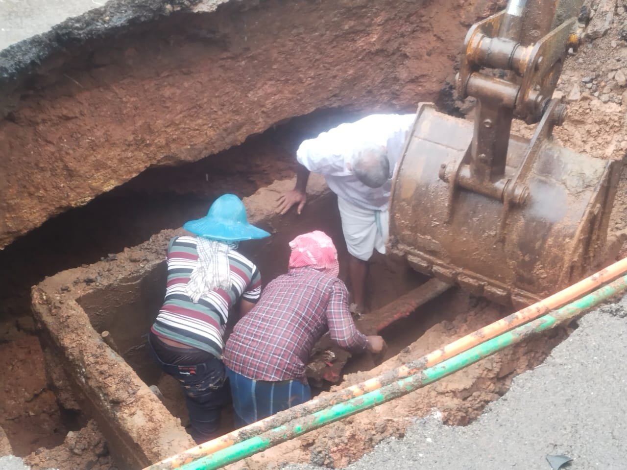 മൂവാറ്റുപുഴ: മൂവാറ്റുപുഴ പാലത്തിന്റെ അപ്രോച്ച് റോഡില് വലിയ കുഴി രൂപപ്പെട്ടു. ഇന്നലെ രാത്രിയോടെയാണ് ചെറിയ വിള്ളല് കണ്ടെത്തിയത്. ഇന്ന്പുലര്ച്ചയോടെ കുഴി വലുതായി. ഇവിടെ പൊതുമരാമത്ത് വകുപ്പ് പിഡബ്ല്യുഡി എക്സിക്യൂട്ടീവ് എഞ്ചിനീയറുടെ നേതൃത്വത്തിലുള്ള വിദഗ്ധ സംഘം പരിശോധന നടത്തുകയാണ്. സ്ഥലത്ത് മാത്യുകുഴല്നാടന് എംഎല്എയും പിഡബ്ല്യുഡി ഉദ്യോഗസ്ഥര്ക്ക് പുറമേ ബിഎസ്എന്എല്, കെഎസ്ഇബി, വാട്ടര് അതോറിറ്റി ഉദ്യോഗസ്ഥരും സ്ഥലത്തെത്തി ക്യാമ്പ് ചെയ്യുകയാണ്. ഇതു വഴിയുള്ള ഗതാഗതം വഴിതിരിച്ചുവിട്ടു. ജെസിബി ഉപയോഗിച്ച് കുഴിയുടെ ആഴമളന്നാണ് പരിശോധന. കുഴിയുടെ താഴ്ച്ചയില് ബിഎസ്എന്എല്ലിന്റെ ബോക്സുണ്ട്. ഇതാണ് താഴേക്കിരുന്നത്. പാലത്തിന്റെ 5 മീറ്റര്മാത്ര അകലെയാണ് നിലവില് കുഴിയുള്ളത്.