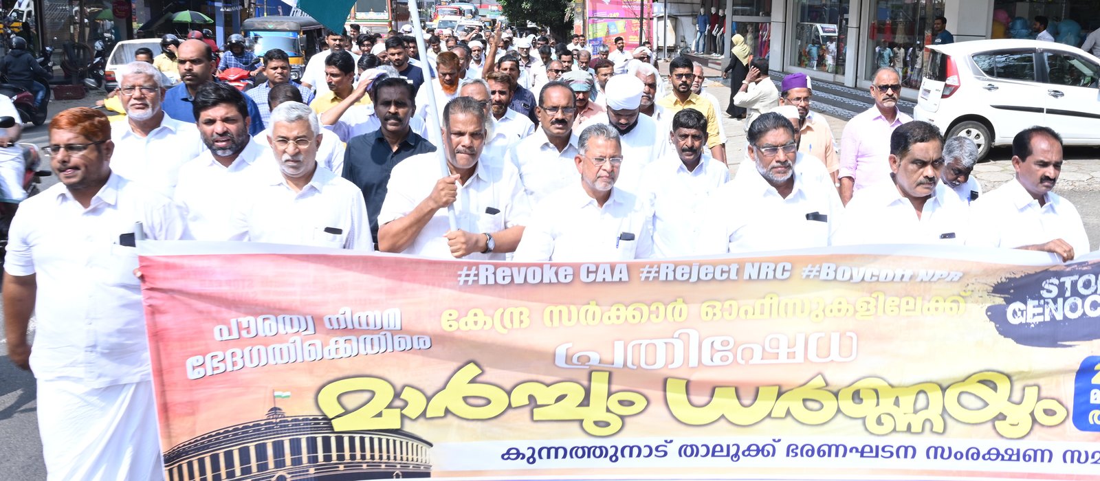 ഉപരോധ സമരം ചെയർമാൻ ഹാജി റ്റി.എച്ച് മുസ്തഫ ഉദ്ഘാടനം ചെയ്തു. അമിത് ഷായുടെ തിട്ടൂരം നടപ്പിലാക്കാൻ ഇന്ത്യൻ ജനത സമ്മതിക്കുകയില്ലന്നും ഇന്ത്യയെ രണ്ടായി വിഭജിക്കാനുള്ള ശ്രമം പരാജയപ്പെടുമെന്നും അദ്ദേഹം പറഞ്ഞു.