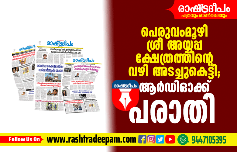 മൂവാറ്റുപുഴ: പുരാതനമായ പെരുവംമൂഴി ശ്രീ അയ്യപ്പ ക്ഷേത്രത്തിന്റെ വഴി അടച്ചുകെട്ടിയതായി ആര്ഡിഓക്ക് പരാതി. ഭക്തര് ക്ഷേത്രത്തിലേക്ക് പ്രവേശിച്ചുകൊണ്ടിരിക്കുന്ന കിണറിരിക്കുന്ന സ്ഥലത്തേക്കുള്ള തൊണ്ടുവഴിയാണ് സമീപവാസികളടച്ചു കെട്ടിയത്. ഇത് സംബന്ധിച്ച് വി.പി.വര്ഗ്ഗീസ്, ജിബി വര്ഗ്ഗീസ് എന്നിവര്ക്കെതിരെ ക്ഷേത്ര ഭാരവാഹികളും ഭക്തരും ആര്ഡിഓക്ക് പരാതി നല്കി. ഇത് സംബന്ധിച്ച് സ്ഥലം സര്വ്വേപ്രകാരം അളന്നാലേ കയ്യേറ്റം തിട്ടപെടുത്താന് കഴിയൂവെന്ന് വാളകം വില്ലേജ് ഓഫീസര് ആര്ഡിഓയ്ക്ക് റിപ്പോര്ട്ട് നല്കി. ശബരിമല സ്ത്രീ പ്രവേശനകേസിലെ 49-ാം പുനപരിശോധന ഹര്ജിക്കാരായ ക്ഷേത്രമാണ് പെരുവംമൂഴി ശ്രീ അയ്യപ്പ ക്ഷേത്രം.