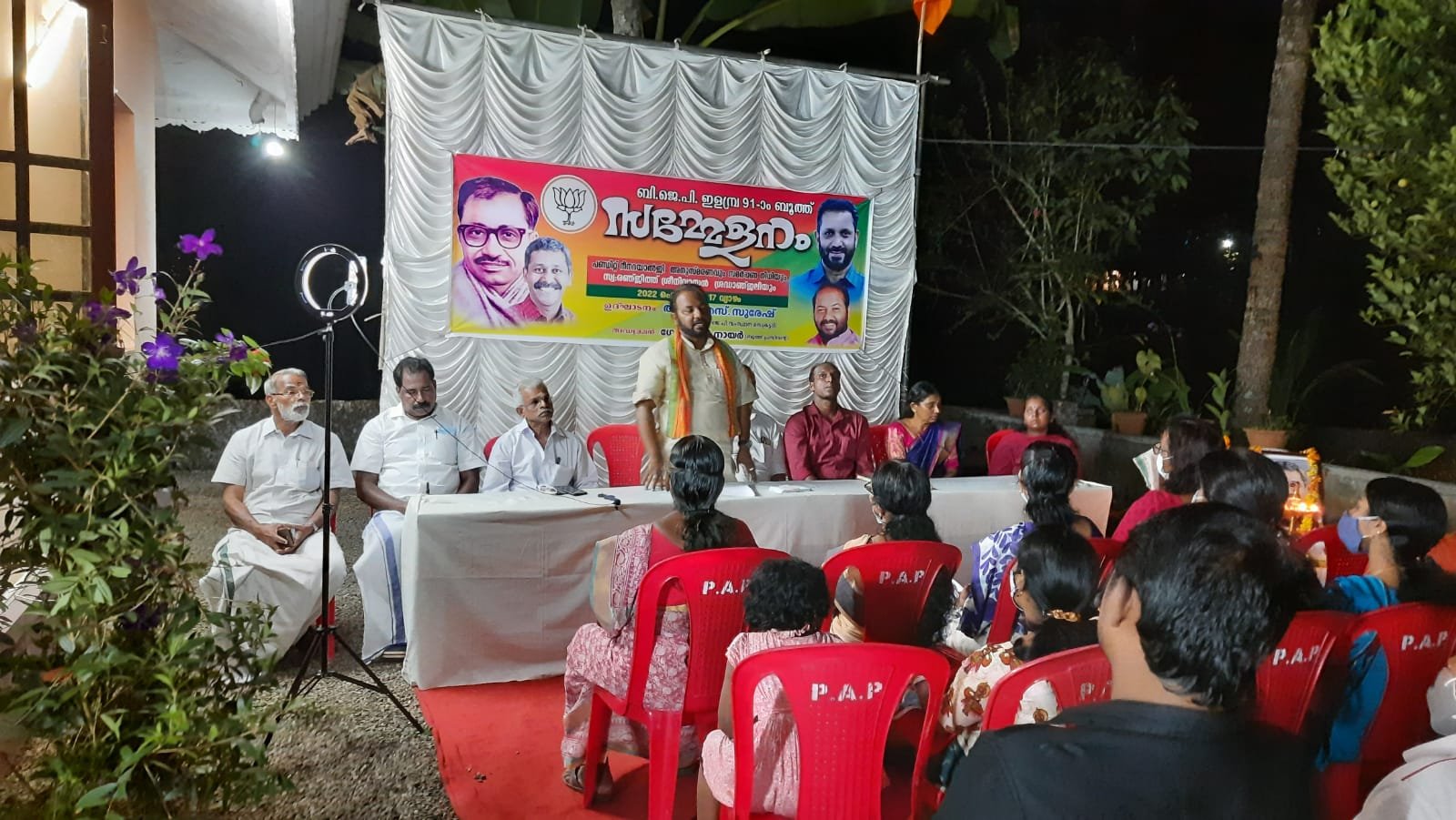 ഭാരതീയ ജനതാ പാര്ട്ടി ഇളംബ്ര 91-ാം ബൂത്തിന്റെ ആഭിമുഖ്യത്തില്, പണ്ഡിറ്റ് ദീനദയാല് ഉപാധ്യായ അനുസ്മരണവും, അഡ്വക്കേറ്റ് രഞ്ജിത്ത് ശ്രീനിവാസന് ശ്രദ്ധാഞ്ജലിയും നടന്നു. ബൂത്ത് പ്രസിഡന്റ് ഗോപുവിന്റെ അധ്യക്ഷതയില് കൂടിയ സമ്മേളനത്തില് ഭാരതീയ ജനതാ പാര്ട്ടിയുടെ സംസ്ഥാന സെക്രട്ടറി അഡ്വക്കേറ്റ് എസ് സുരേഷ് ഉദ്ഘാടനകര്മ്മം നിര്വഹിച്ചു. 92-ാം ബൂത്ത് പ്രസിഡന്റ് കെ എന് ബിനു സംസ്ഥാന സെക്രട്ടറി അഡ്വക്കേറ്റ് എസ് സുരേഷിന് സ്വീകരണം നല്കി. പരിപാടിയില് പാര്ട്ടിയുടെ മണ്ഡലം പ്രസിഡന്റ് ജയകുമാര് വെട്ടികാടന്, ജില്ലാ കമ്മിറ്റി അംഗം കെ ആര് രഞ്ജിത്ത് എന്നിവര് സംസാരിച്ചു. പാര്ട്ടിയുടെ മണ്ഡലം സെക്രട്ടറി വിനോദ് കുമാര്, അജി പൂക്കട, കെ കെ രവീന്ദ്രന്, എ.ന്. രാമചന്ദ്രന്, ഗീതുമോഹന്ദാസ്, അനീഷ ബിജു എന്നിവര് സന്നിഹിതരായിരുന്നു