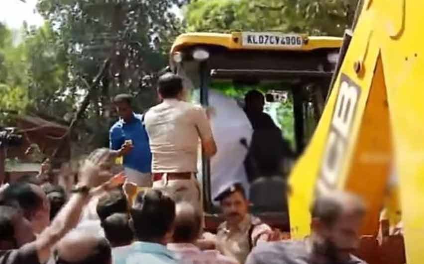 പദ്ധതി തുടങ്ങുന്ന സ്ഥലത്ത് റോഡ് ഉപരോധിച്ച് പ്രതിഷേധം തുടരുകയാണ്. ബെന്നി ബഹനാന് എംപി, അന്വര് സാദത്ത് എംഎല്എ എന്നിവരടക്കം സ്ഥലത്തുണ്ട്.