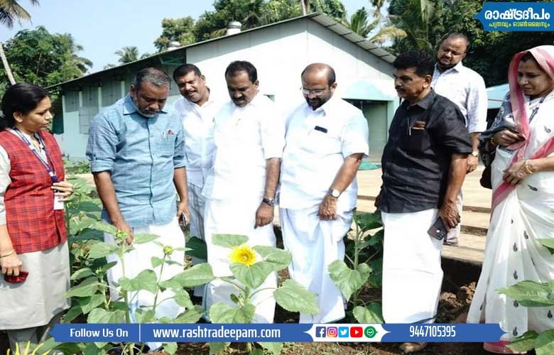 കൊയ്ത്തിനു തയ്യാറായി നില്ക്കുന്ന ചേറ്റാടി, കതിരണിഞ്ഞു നില്ക്കുന്ന മനുരത്ന, വൈറ്റില 10, ഞവര, രക്തശാലി എന്നീ നെല്ലിനങ്ങള്, സൂര്യകാന്തി, റാഗി, ചിയാ, എള്ള് എന്നീ വിളകളും സംയോജിത കൃഷിരീതികളും മൂല്യവര്ധിത ഉല്പ്പന്നങ്ങളും ഫാമില് ഉത്്പാദിപ്പിക്കുന്ന ജൈവവളര്ച്ചാ ത്വരകങ്ങളും അദ്ദേഹം പരിശോധിച്ചു.