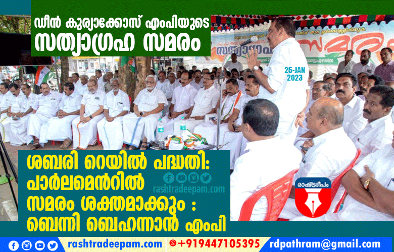 ശബരി പദ്ധതി മുടങ്ങിക്കിടക്കുന്നത് കാരണം നിരവധി കുടുംബങ്ങള് ദുരിതത്തിലാണ്. ശബരിമല തീര്ഥാടനത്തിനും വ്യവസായത്തിനും കൃഷിക്കും വിനോദസഞ്ചാരത്തിനും ഏറെ പ്രാധാന്യം ലഭിക്കുന്ന പദ്ധതി കൂടിയാണ് ഇത്. ശബരി റെയില് പദ്ധതി വിഷയം എല്ലാ കാലവും പാര്ലമെന്റിന്റെ ശ്രദ്ധയില്പ്പെടുത്തിയത് കോണ്ഗ്രസ് ജനപ്രതിനിധികള് ആണെന്ന് ബെന്നി ബെഹന്നാന് പറഞ്ഞു.
