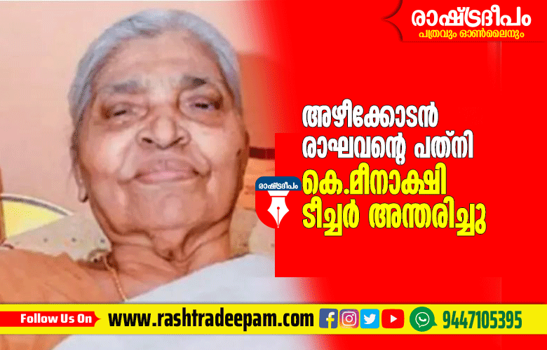 സിപിഎം നേതാവ് അഴീക്കോടന് രാഘവന്റെ പത്നി പള്ളിക്കുന്ന് അഴീക്കോടന് നിവാസില് കെ മീനാക്ഷി ടീച്ചര് (87) അന്തരിച്ചു. വാര്ധക്യ സഹജമായ അസുഖങ്ങളെ തുടര്ന്ന് ചികിത്സയിലായിരുന്നു. കണ്ണൂര് എകെജി ആശുപത്രിയില് വച്ചായിരുന്നു അന്ത്യം.