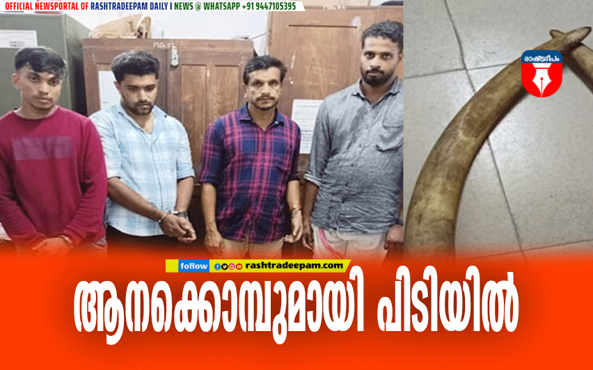 സംഘം ആനക്കൊമ്പ് കടത്താന് ശ്രമിച്ച കാറും പോലീസ് പിടിച്ചെടുത്തു. രഹസ്യവിവരത്തിന്റെ അടിസ്ഥാനത്തില് നടത്തിയ പരിശോധനയിലാണ് കെ.എസ്.ആര്.ടി.സി ബസ് സ്റ്റാന്ഡ് പരിസരത്തു നിന്നുമാണ് പ്രതികളെ പിടികൂടിയത്.
