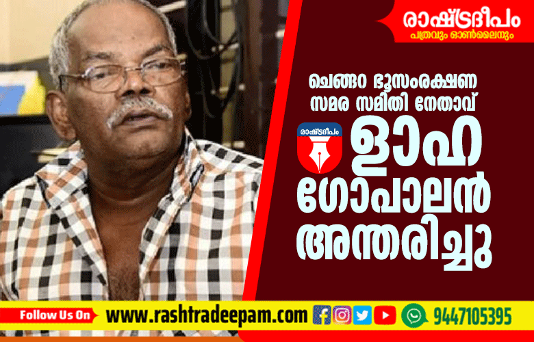 പത്തനംതിട്ട: ചെങ്ങറ ഭൂസംരക്ഷണ സമര സമിതി നേതാവ് ളാഹ ഗോപാലന് (72) കൊറോണ ബാധിച്ചു മരിച്ചു. പത്തനംതിട്ട ജനറല് ആശുപത്രിയില് ചികിത്സയിലിരിക്കെയാണ് മരണം. ആരോഗ്യ പ്രശ്നങ്ങള് മൂലം ഏറെക്കാലമായി അദ്ദേഹം വിശ്രമത്തില് ആയിരുന്നു. സാധുജന വിമോചന വേദി നേതാവും ദളിത് ബുദ്ധി ജീവിയുമായിരുന്നു.