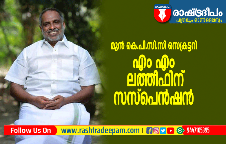 മുന് കെ.പി.സി.സി സെക്രട്ടറിക്ക് സസ്പെഷന്. കെ.പി.സി സി ഭാരവവാഹി പട്ടികയെ ചോദ്യം ചെയ്ത ഉമ്മന് ചാണ്ടി വിഭാഗത്തിന്റെ തലസ്ഥാനത്തെ പ്രമുഖ നേതാവ് എം എം ലത്തീഫിനാണ് സസ്പെന്ഷന്. കെ പി സി സി ആസ്ഥാനത്തേക്ക് പ്രതിഷേധ പ്രകടനം നടത്താന് ആഹ്വാനം ചെയ്തെന്നാണ് ലത്തീഫിനെതിരെ ഉയരുന്ന കുറ്റാരോപണം. പാര്ട്ടിയില് നിന്ന് പുറത്താക്കാതിരിക്കാന് വിശദീകരണം നല്കണമെന്നും സുധാകരന് ആവസ്യപ്പെട്ടു.