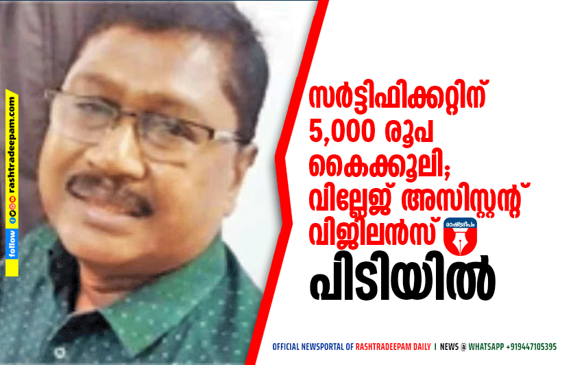 സ്ഥലത്തിന്റെ ആര്.ഒ.ആര്. (റെക്കോഡ്സ് ഓഫ് റൈറ്റ്സ്) സര്ട്ടിഫിക്കറ്റിനുവേണ്ടിയാണ് അബ്ദുള്ളക്കുട്ടി വില്ലേജ് ഓഫീസില് അപേക്ഷ നല്കിയത്. പലതവണ ഓഫീസില് കയറിയിറങ്ങിയെങ്കിലും സര്ട്ടിഫിക്കറ്റ് ലഭിച്ചിരുന്നില്ല. ഒടുവില് വില്ലേജ് അസിസ്റ്റന്റ് സ്ഥലപരിശോധനയ്ക്കായി എത്തി. തുടര്ന്നാണ് 5,000 രൂപ കൈക്കൂലി ആവശ്യപ്പെട്ടത്. ഈ വിവരം അബ്ദുള്ളക്കുട്ടി വിജിലന്സ് ഡിവൈ.എസ്.പി. സി.ജി. ജിം പോളിനെ അറിയിച്ചു. ചൊവ്വാഴ്ച ഉച്ചയ്ക്കുശേഷം വില്ലേജ് ഓഫീസിലെത്തിയ പരാതിക്കാരന് വിജിലന്സ് നല്കിയ ഫിനോഫ്തലിന് പുരട്ടിയ നോട്ടുകള് അയ്യപ്പന് നല്കി. കാത്തുനില്ക്കുകയായിരുന്ന വിജിലന്സ് ഉദ്യോഗസ്ഥര് ഇയാളെ കൈയോടെ പിടികൂടുകയും ചെയ്തു.