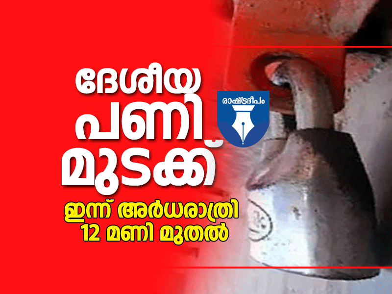 തിരുവനന്തപുരം: ദേശീയ പണിമുടക്ക് ഇന്ന് അര്ധരാത്രി 12 മണി മുതല് ബുധനാഴ്ച രാത്രി 12 വരെ നടക്കും. തൊഴിലാളി യൂണിയനുകളുടെ സംയുക്തസമിതിയാണ് പണിമുടക്ക് പ്രഖ്യാപിച്ചിരിക്കുന്നത്. സംഘടിത, അസംഘടിത, പരമ്പരാഗത മേഖലയിലെ തൊഴിലാളികള് പണിമുടക്കില് പങ്കെടുക്കും. ബി.എം.എസ്. ഒഴികെ 10 ദേശീയ തൊഴിലാളി യൂണിയനുകളും കേന്ദ്ര, സംസ്ഥാന സര്ക്കാര് ജീവനക്കാരുടെയും ബാങ്ക്, ഇന്ഷുറന്സ്, ബി.എസ്.എന്.എല്. ജീവനക്കാരുടെയും സംഘടനകള് ചേര്ന്നാണ് പണിമുടക്ക് പ്രഖ്യാപിച്ചത്. വിമാനത്താവള, വ്യവസായ, തുറമുഖ തൊഴിലാളികളും പണിമുടക്കില് പങ്കെടുക്കും. കര്ഷകരും കര്ഷകത്തൊഴിലാളികളും ബുധനാഴ്ച ഗ്രാമീണ ഹര്ത്താലിന് ആഹ്വാനം ചെയ്തിട്ടുണ്ടെന്നും നേതാക്കള് അറിയിച്ചു. അവശ്യ സര്വീസുകള്, ആശുപത്രി, പാല്, പത്രവിതരണം, വിനോദ സഞ്ചാര മേഖല, ശബരിമല തീര്ത്ഥാടനം എന്നിവയെ പണിമുടക്കില്നിന്ന് ഒഴിവാക്കിയിട്ടുണ്ട്.