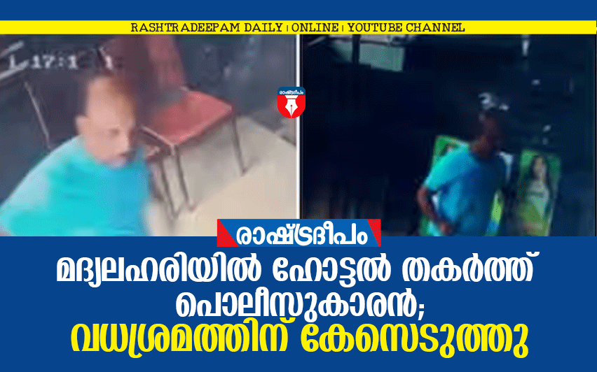 ആലപ്പുഴ :മദ്യലഹരിയില് ഹോട്ടല് അടിച്ചു തകര്ത്ത സംഭവത്തില് പൊലീസുകാരനെതിരെ ആലപ്പുഴ സൗത്ത് പൊലീസ് വധശ്രമത്തിന് കേസെടുത്തു. ചങ്ങനാശ്ശേരി ട്രാഫിക് പൊലീസ് സ്റ്റേഷനിലെ സിപിഒ ആലപ്പുഴ വാടക്കല് സ്വദേശിയായ കെ എഫ് ജോസഫിനെതിരെയാണ് കേസ് എടുത്തത്. പൊലീസുകാരന്റെ അതിക്രമത്തില് 6 ലക്ഷം രൂപയുടെ നഷ്ടമുണ്ടായെന്ന് ഹോട്ടലുടമ ആരോപിച്ചു. പ്രതിയെ ഇന്ന് കോടതിയില് ഹാജരാക്കും.
