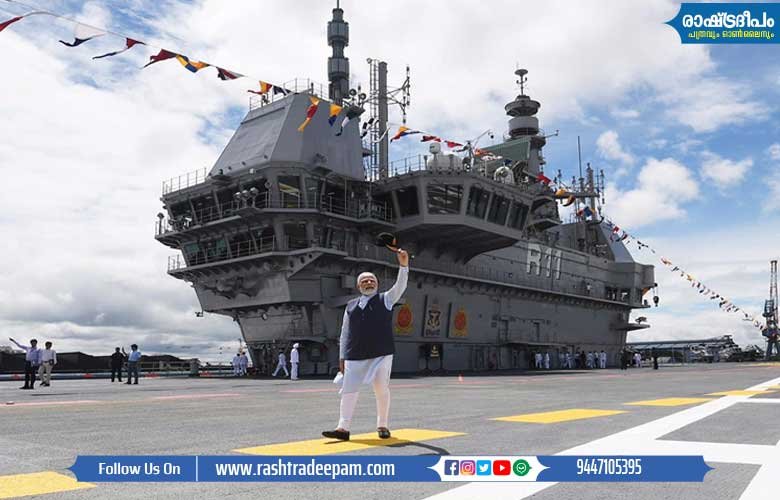 രാജ്യത്തിനും നാവിക സേനക്കും ചരിത്ര മുഹൂര്ത്തം സമ്മാനിച്ച് ഇന്ത്യ തദ്ദേശീയമായി വികസിപ്പിച്ച വിമാന വാഹിനി കപ്പല് ഐഎന്എസ് വിക്രാന്ത് പ്രധാനമന്ത്രി നരേന്ദ്രമോദി സേനക്ക് സമര്പ്പിച്ചു. കൊച്ചി കപ്പല്ശാലയിലായിരുന്നു ചടങ്ങ്. രാജ്യത്തിന്റെ അഭിമാനമാണ് കേരളത്തിലെ സമുദ്രത്തിലെന്ന് പ്രധാനമന്ത്രി പറഞ്ഞു. വിക്രാന്ത് വിശിഷ്ടം, പരിശ്രമത്തിന്റെ പ്രതീകം, ഓരോ ഭാരതീയനും അഭിമാനിക്കുന്ന മുഹൂര്ത്തമാണിത്.. വെല്ലുവിളികള് ഉയര്ന്നു വന്നാലും നേരിടാന് ഭാരതത്തിനു കഴിയും.