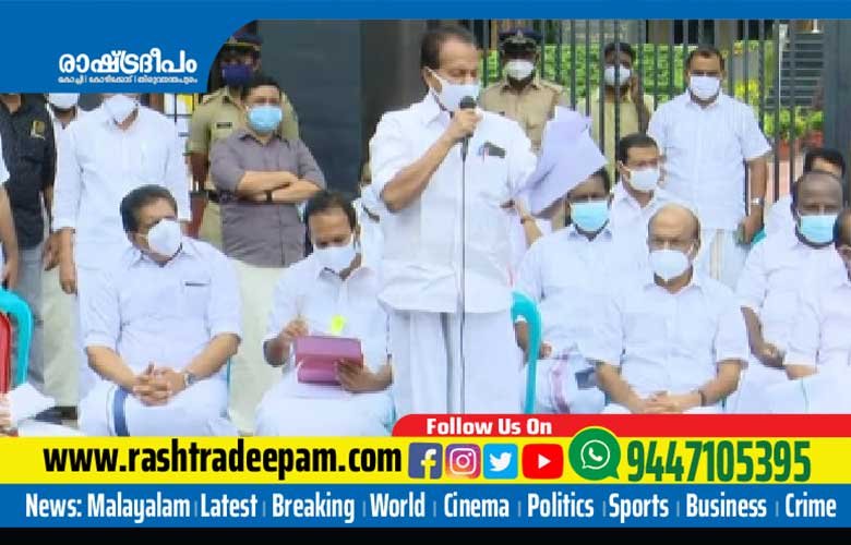 അടിയന്തര പ്രമേയത്തിന് അനുമതി നിഷേധിച്ച ശേഷം സ്പീക്കര് മറ്റു നടപടികളിലേക്ക് കടന്നതോടെയാണ് പ്രതിപക്ഷം സഭയ്ക്ക് പുറത്തേക്ക് പ്രതിഷേധച്ചുവട് മാറ്റിയത്. സഭാ കവാടത്തില് ധര്ണ നടത്തിയതിന് ശേഷമാണ് പ്രതീകാത്മക സഭ ചേര്ന്നത്. കേരളത്തിന്റെ ചരിത്രത്തിലാദ്യമായാണ് ഒരു മുഖ്യമന്ത്രി വിദേശകറന്സി കടത്തിയെന്ന ആരോപണം നേരിടുന്നത്.