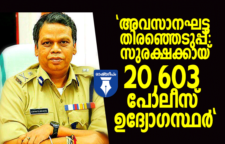 തദ്ദേശസ്വയംഭരണ സ്ഥാപനങ്ങളിലേയ്ക്ക് തിങ്കളാഴ്ച നടക്കുന്ന അവസാനഘട്ട തിരഞ്ഞെടുപ്പിന് മതിയായ സുരക്ഷയൊരുക്കാന് നടപടികള് സ്വീകരിച്ചതായി സംസ്ഥാന പോലീസ് മേധാവി ലോക്നാഥ് ബെഹ്റ അറിയിച്ചു.