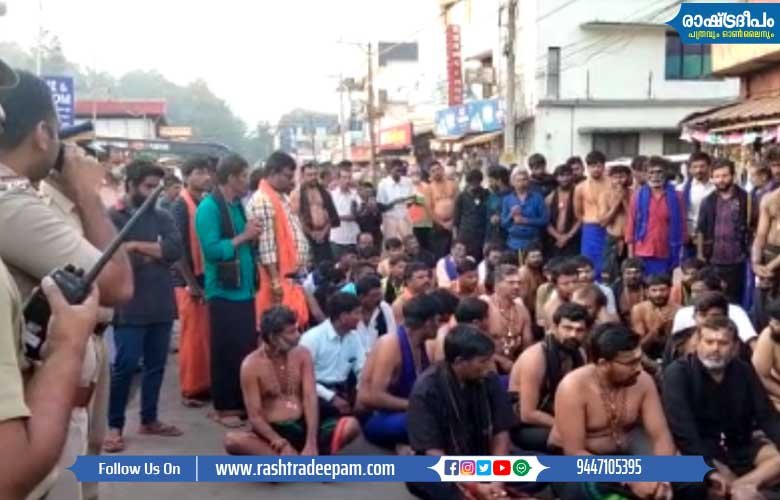 എരുമേലിയില് നിന്നും തീര്ത്ഥാടകരുടെ വാഹനങ്ങള് കടത്തിവിടുന്നത് നിര്ത്തി. കണമല, നിലയ്ക്കല് ഭാഗങ്ങളിലെ ഗതാഗതക്കുരുക്ക് കണക്കിലെടുത്താണ് പൊലീസിന്റെ നടപടി. തെലുങ്കാനയില് നിന്നുള്ള തീര്ത്ഥാടക സംഘം എരുമേലിയില് റോഡില് കുത്തിയിരുന്ന് പ്രതിഷേധിക്കുന്നു.