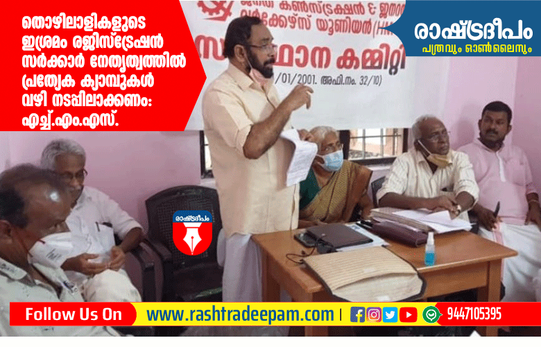 കൊച്ചി: അസംഘടിതമേഖലയിലെ തൊഴിലാളികളുടെ ക്ഷേമത്തിനും അവർക്ക് ആവശ്യമായ സമാശ്വാസം എത്തിച്ചു കൊടുക്കുന്നതിനുമായാണ് തൊഴിലാളികളുടെ ഡിജിറ്റൽ റജിസ്ട്രേഷൻ ഉദ്ദേശിച്ചിരിക്കുന്നത് .ട്രേഡ് യൂണിയനുകൾ ഇതിനായുള്ള ശ്രമങ്ങൾ നടത്തുന്നുണ്ടെങ്കിലും ഭലവത്തായ രീതിയിൽ ആവുന്നില്ല. നേരത്തെ തെരഞ്ഞെടുപ്പ് ഐഡന്റിറ്റി കാർഡും ആധാർ കാർഡും നൽകിയതുപോലെ സർക്കാർ ചുമതലയിൽ പ്രത്യേക ക്യാമ്പ് നടത്തി ഇരജിസ്ട്രേഷൻ സമയബന്ധിതമായി പൂർത്തിയാക്കണമെന്ന് ജനത കൺസ്ട്രക്ഷൻ & ജനറൽ വർക്കേഴ്സ് യൂണിയൻ ( എച്ച്.എം.എസ്.) സംസ്ഥാന കമ്മറ്റി നേതൃയോഗം കൊച്ചിയിൽ ആവശ്യപ്പെട്ടു.