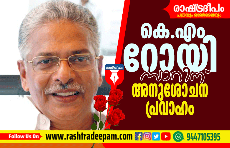 കെ.എം.റോയിയുടെ നിര്യാണത്തില് നിയമസഭാ സ്പീക്കര് എം ബി രാജേഷ് അനുശോചിച്ചു. രാഷ്ട്രീയ, സാമൂഹിക, സാംസ്കാരിക രംഗത്ത് വലിയ സൗഹൃദവലയത്തിന് ഉടമയായിരുന്നു റോയി. പുതുതലമുറയിലെ മാധ്യമപ്രവര്ത്തകര്ക്ക് എന്നും ഒരു പ്രചോദനമായിരുന്നു കെ എം റോയി.