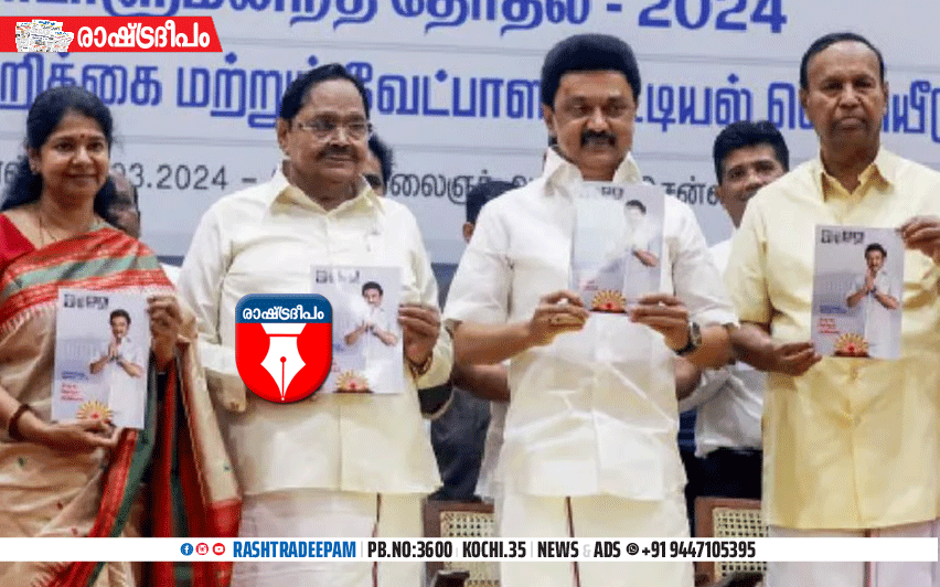 ചെന്നൈ: ലോക്സഭ തിരഞ്ഞെടുപ്പിനുള്ള ഡിഎംകെയുടെ പ്രകടന പത്രിക തമിഴ്നാട് മുഖ്യമന്ത്രി എം കെ സ്റ്റാലിന് പുറത്തിറക്കിയത്. ഡിഎംകെ. രാജ്യത്ത് ചര്ച്ചാ വിഷയമായ ഒട്ടനവധി വിഷയങ്ങളില് പാര്ട്ടിയുടെ നയം വ്യക്തമാക്കുന്നതാണ് പ്രകടന പത്രിക. ഗവര്ണറെ നിയമിക്കാനുള്ള അധികാരം മുഖ്യമന്ത്രിക്ക് നല്കും. പുതുച്ചേരിക്ക് സംസ്ഥാന പദവി തുടങ്ങിയ വാഗ്ദാനങ്ങളാണ് പ്രകടന പത്രിക മുന്നോട്ടുവെക്കുന്നത്. നിരവധി വാഗ്ദാനങ്ങളടങ്ങിയ പ്രകടനപത്രിക കനിമൊഴി കരുണാനിധിയാണ് തയ്യാറാക്കിയത്. ലോക്സഭാ തിരഞ്ഞെടുപ്പിലെ ആദ്യ ഘട്ട സ്ഥാനാര്ത്ഥി പട്ടികയും പുറത്തിറക്കി. പ്രകടന പത്രിക മുന്നോട്ടുവെക്കുന്ന കാര്യങ്ങള് നടപ്പിലാക്കും. അതാണ് നേതാക്കള് പഠിപ്പിച്ചതെന്നും എം കെ സ്റ്റാലിന് വ്യക്തമാക്കി. ദ്രവീഡിയന് മാതൃകയില് നടപ്പിലാക്കിയ പദ്ധതികള് തമിഴ്നാടിന്റെ പുരോഗതി ഇന്ത്യയിലുടനീളം കൊണ്ടെത്തിക്കാന് സഹായിക്കും എന്നും സ്റ്റാലിന് പറഞ്ഞു.